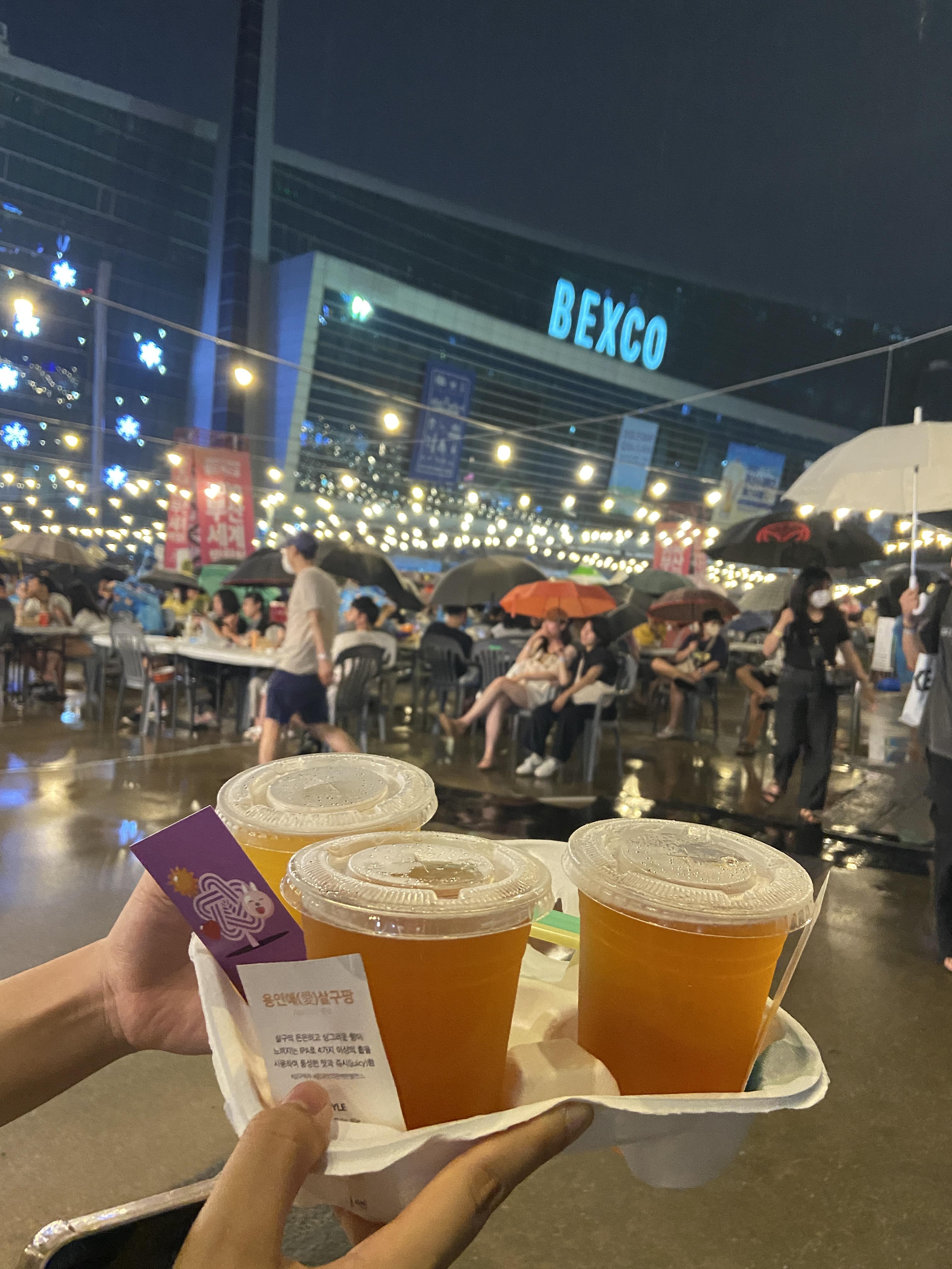 디자인을 좀 더 디벨롭하고 저녁 식사를 하러 갔다. 저녁 식사 후 갑자기 비가 내리기 시작했지만 맥주 축제를 그냥 지나칠 수 없었던 팀원들과 함께 비 맞으면서 맥주 한 잔씩 사 왔다. 비 맞으면서 맥주를 사던 순간이 꽤나 낭만적인 순간들로 기억에 남았다. 프론트를 맡은 유천이는 작업이 많이 남아서 다 같이 온전히 즐기지는 못한 것 같아 아쉽기도 했다.