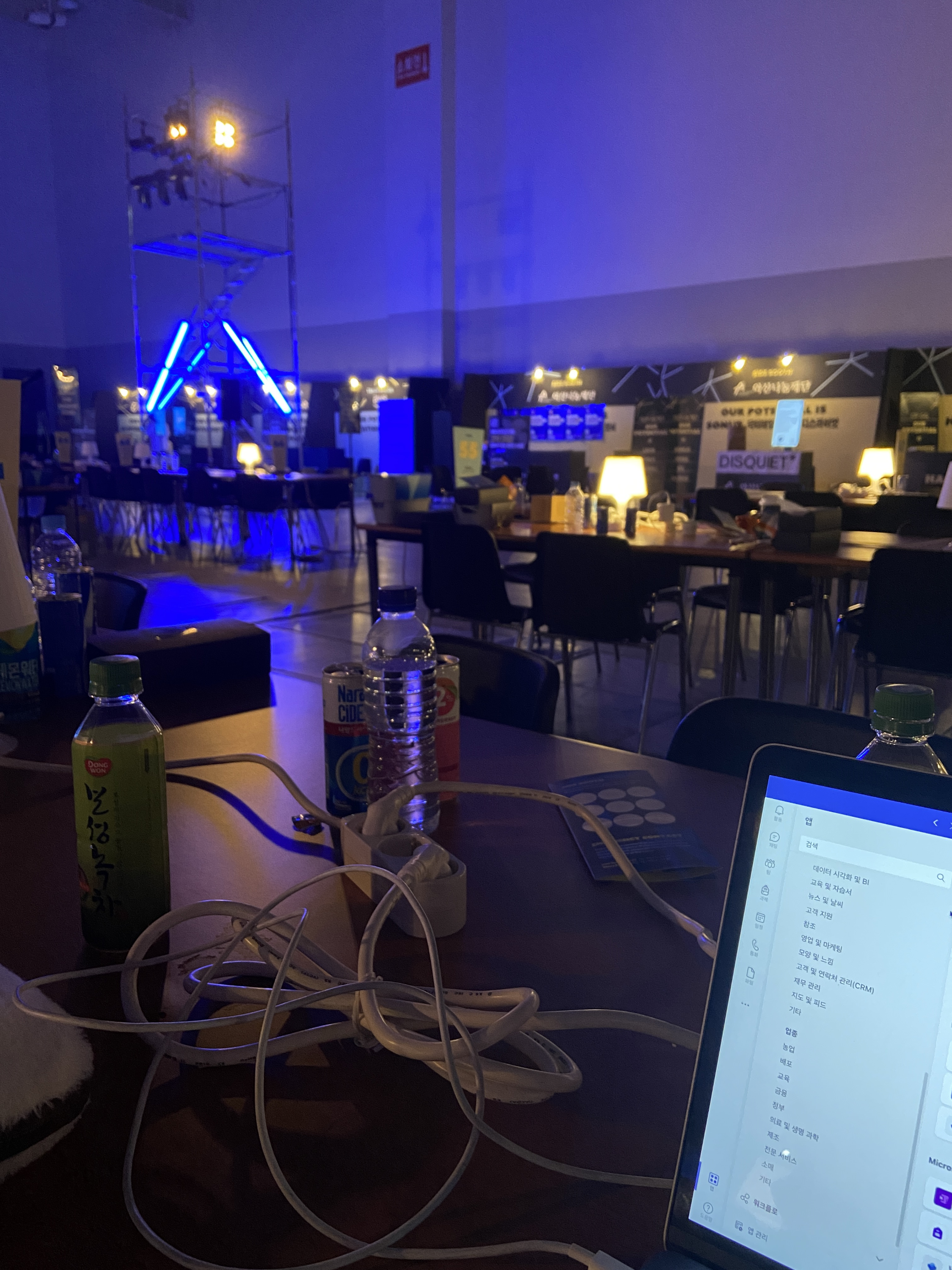 새벽까지 아이디어를 생각하다가 도저히 이거다 싶은 아이디어가 떠오르지 않아 잠시 자고 팀원들과 만나기로 한 시간보다 일찍 BEXCO에 가서 아이디어를 떠올렸다. 극한의 상황이 와야 일을 하는 나의 뇌... 팀원들 모두 열심히 아이디어를 구상해왔고, 8개 정도의 아이디어가 모였다. 그중 최다 투표를 받은 아래의 3개의 아이디어를 가지고 다시 이야기를 해봤다.