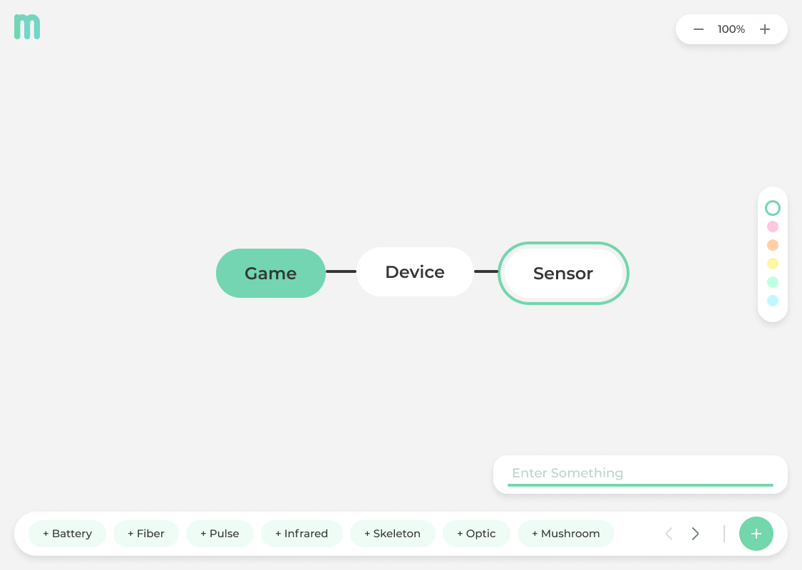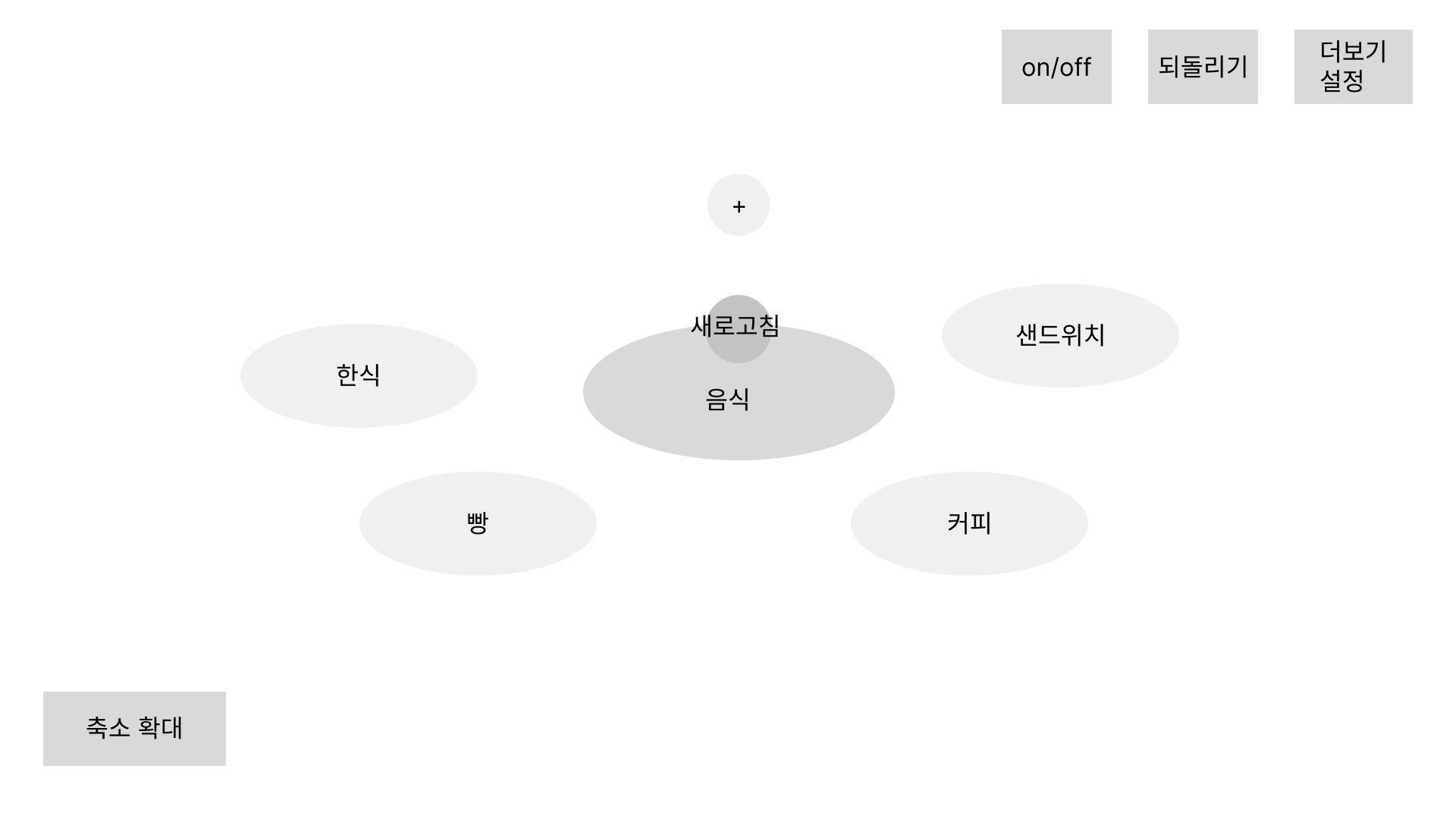 식사 후, PM인 정환이와 와이어프레임 구성하며 어떤 식으로 마인드맵을 이어나가면 좋을지 논의했다. 초기에는 단어 주위에 추천 단어가 뜨는 방식을 생각했지만, 추천 단어가 많아지거나 주변에 추가한 단어가 많아질 경우 직관적으로 보여주기 어려울 것 같아 하단에 추천 단어를 리스트를 보여주는 방식으로 변경했다.