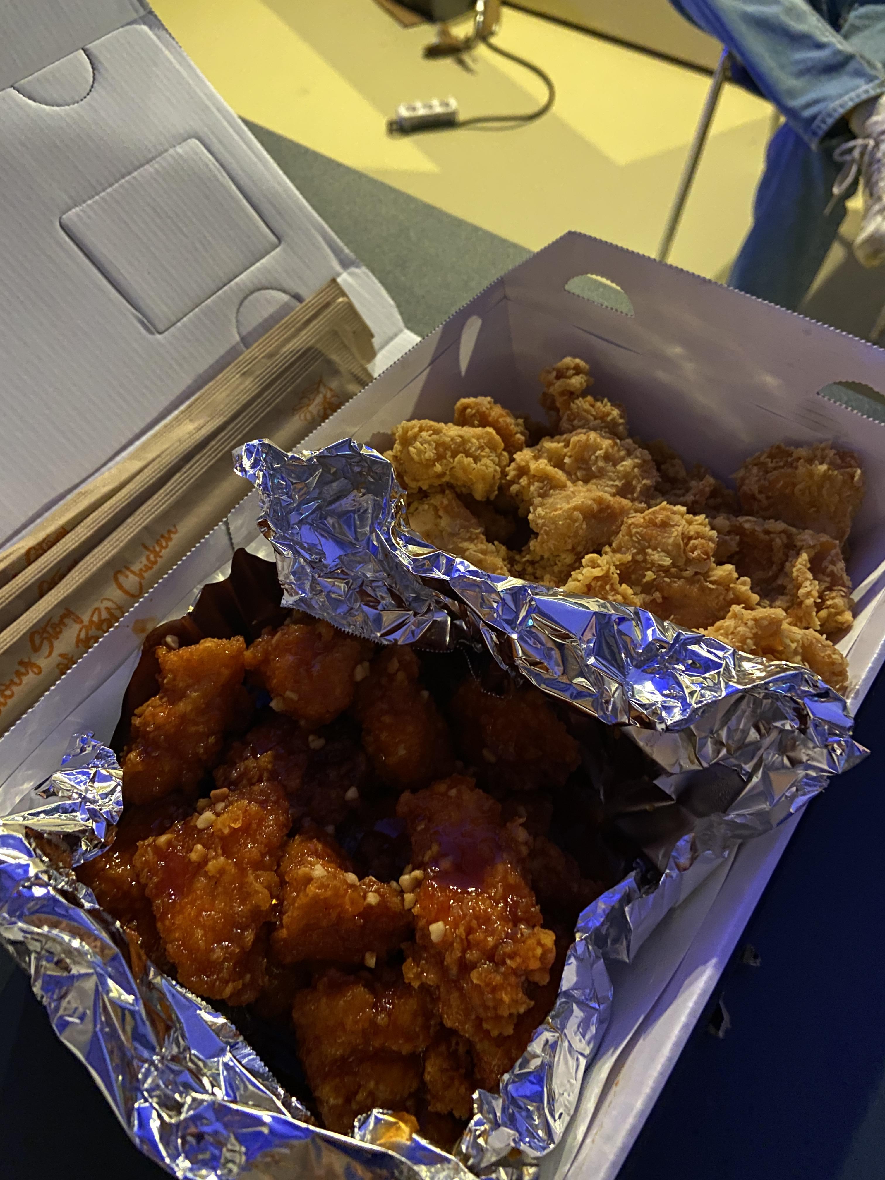 돌아와서 로고나 UI 디테일 부분을 정리하고 전체적으로 크게 작업된 것 같아서 작게 줄이는 작업을 하고, 야식으로 치킨에 과일까지 맛있게 먹고 숙소로 돌아왔다.