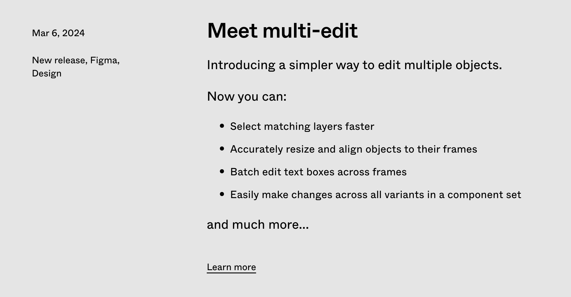 Every now and again, we ship a feature that makes us wonder how we ever got along without it. That’s the story with multi-edit, which simplifies how you edit multiple objects across Figma.