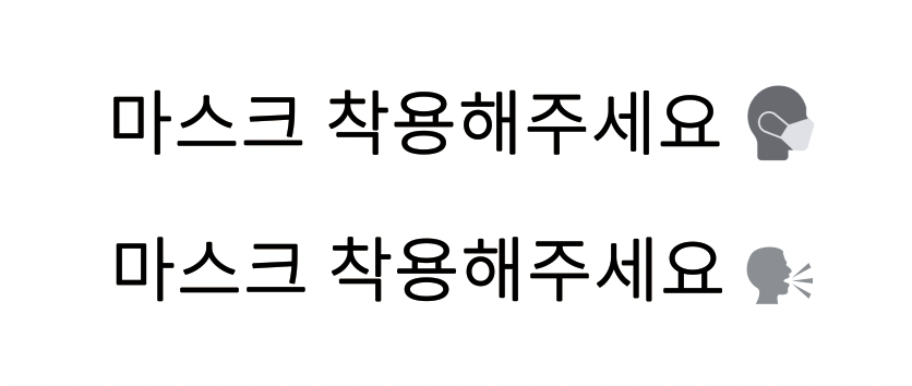 아래와 같이 '마스크 착용해주세요'라는 말과 함께 U+1F5E3 이모지를 사용했을 때는 어색하지 않지만,
